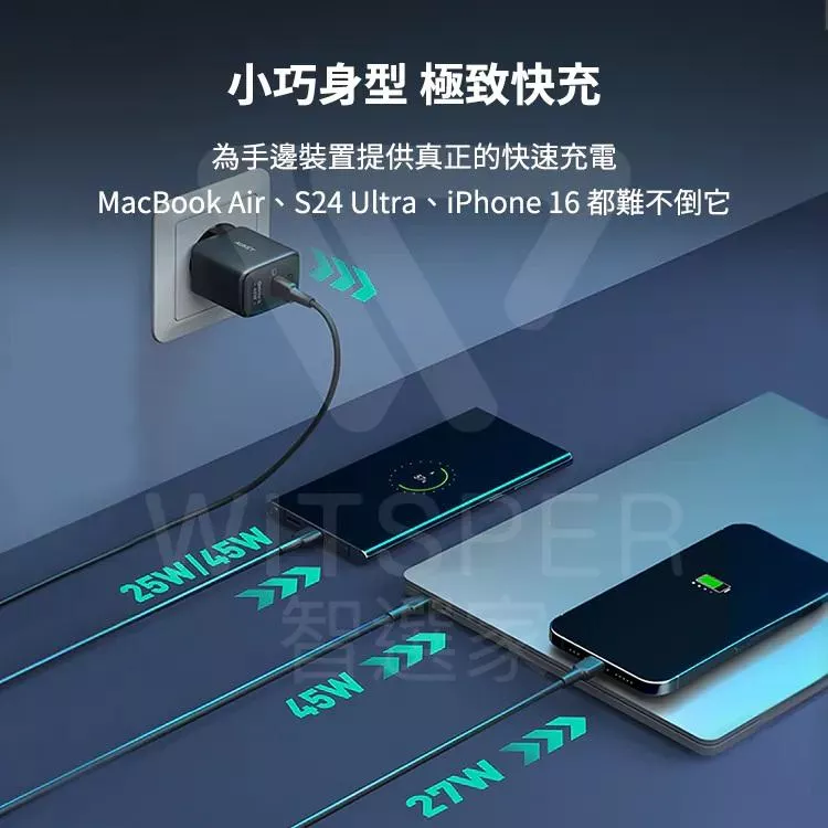 量批∥AUKEY|Omnia II 45W(PA-B2T)Type-C 氮化鎵 PD快充充電器
