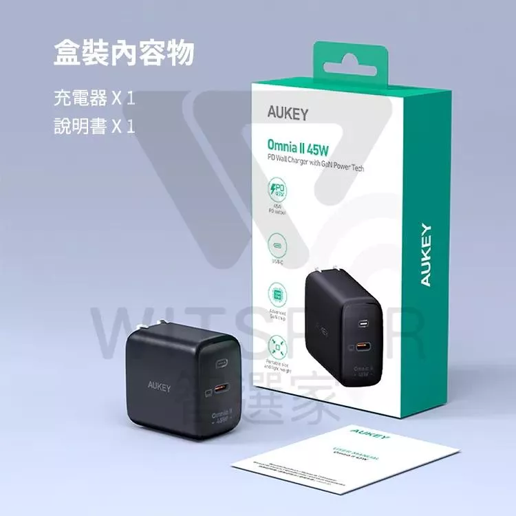 AUKEY|Omnia II 45W(PA-B2T)Type-C 氮化鎵 PD快充充電器