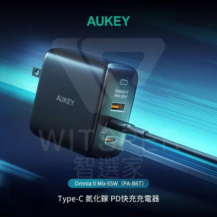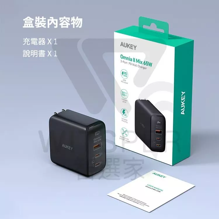 量批∥AUKEY|Omnia II Mix 65W(PA-B6T)Type-C 氮化鎵 PD快充充電器