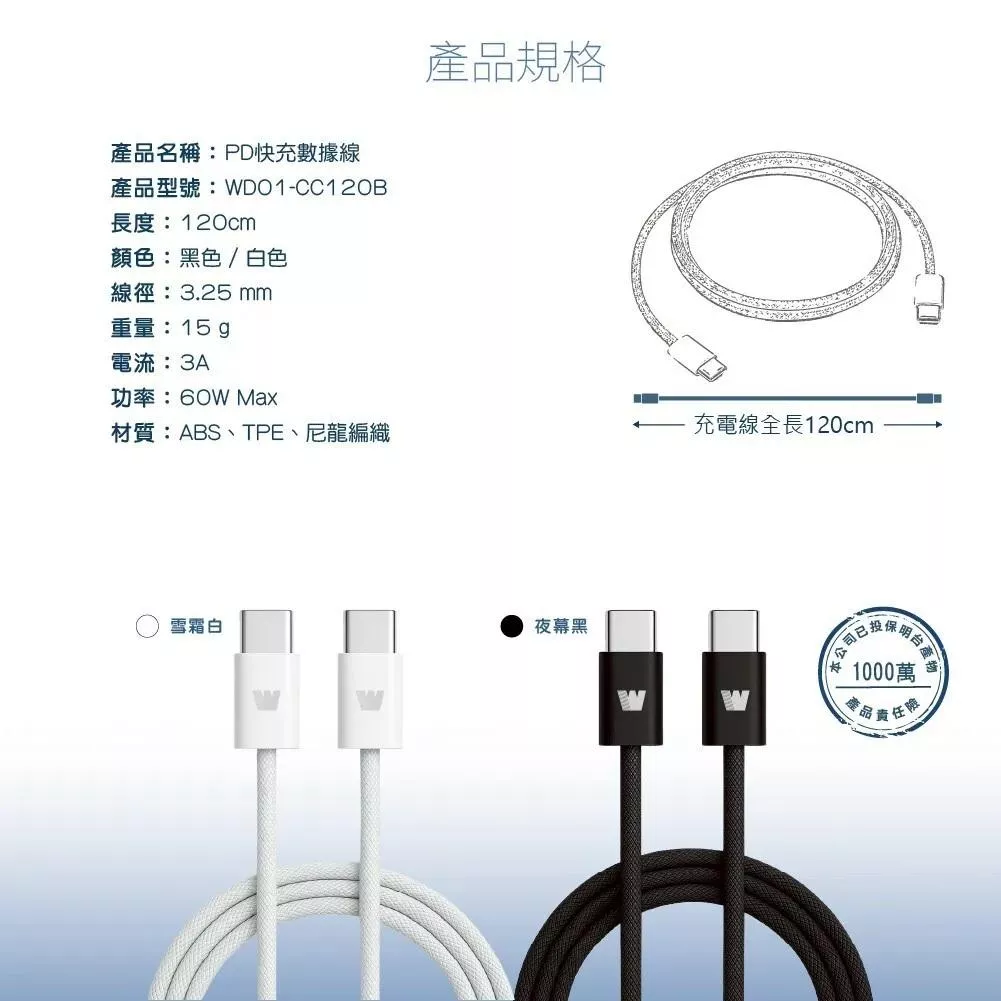 Wephone|60W PD快充數據線 1.2M