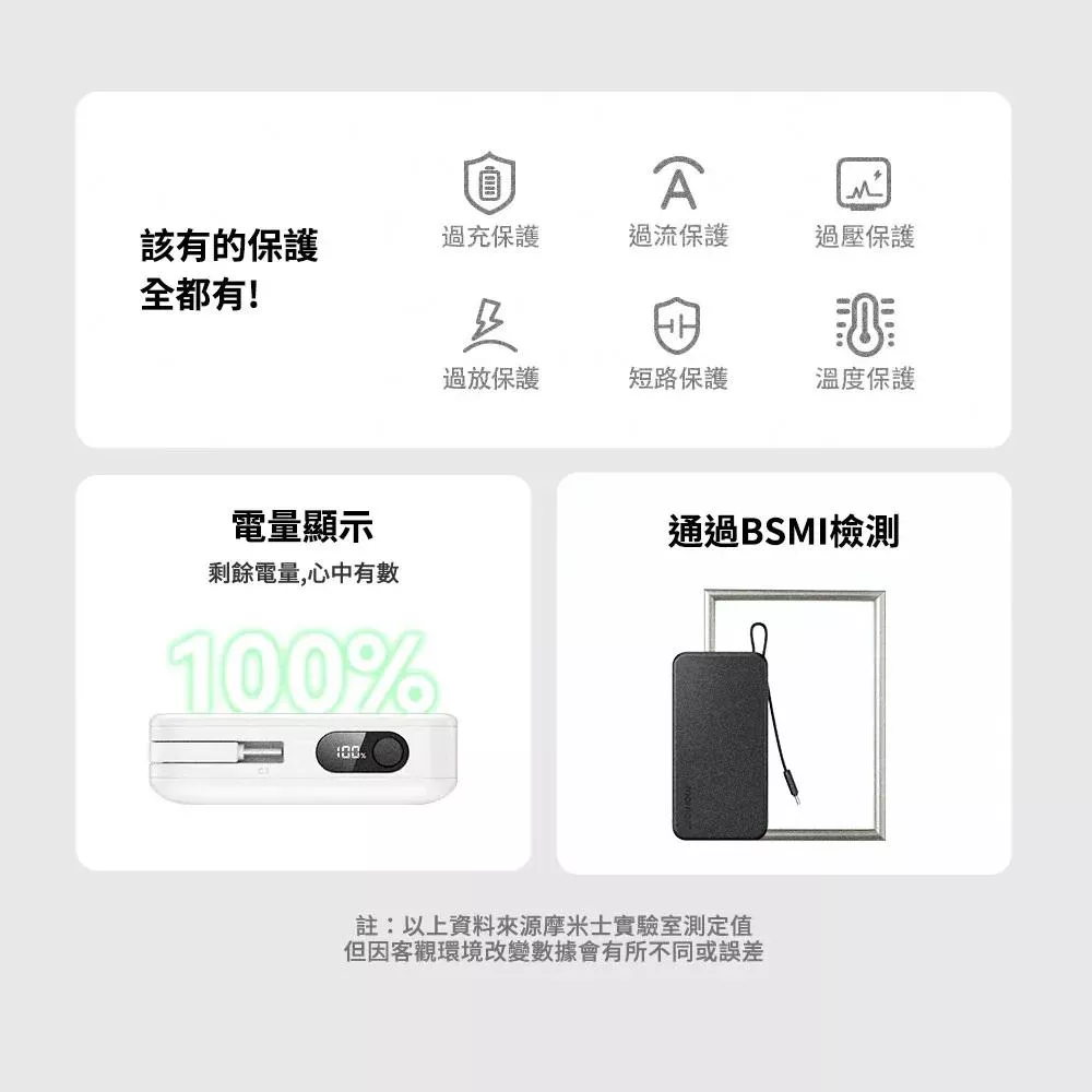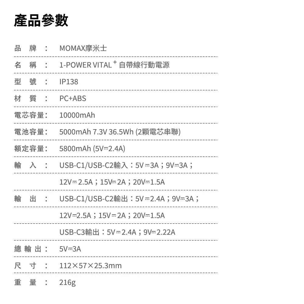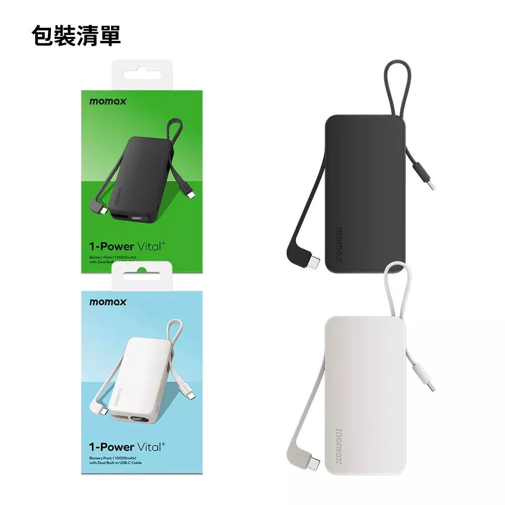量批∥Momax|摩米士 1-Power Vital+ 10000mAh 雙內建 USB-C 線行動電源【CCC/Wh標示】