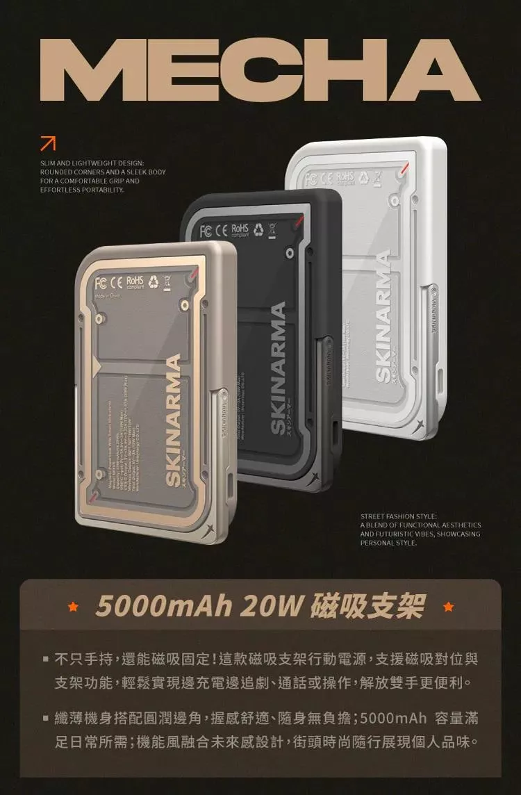 量批∥Skinarma|Mecha 5000mAh 20W 磁吸支架款行動電源