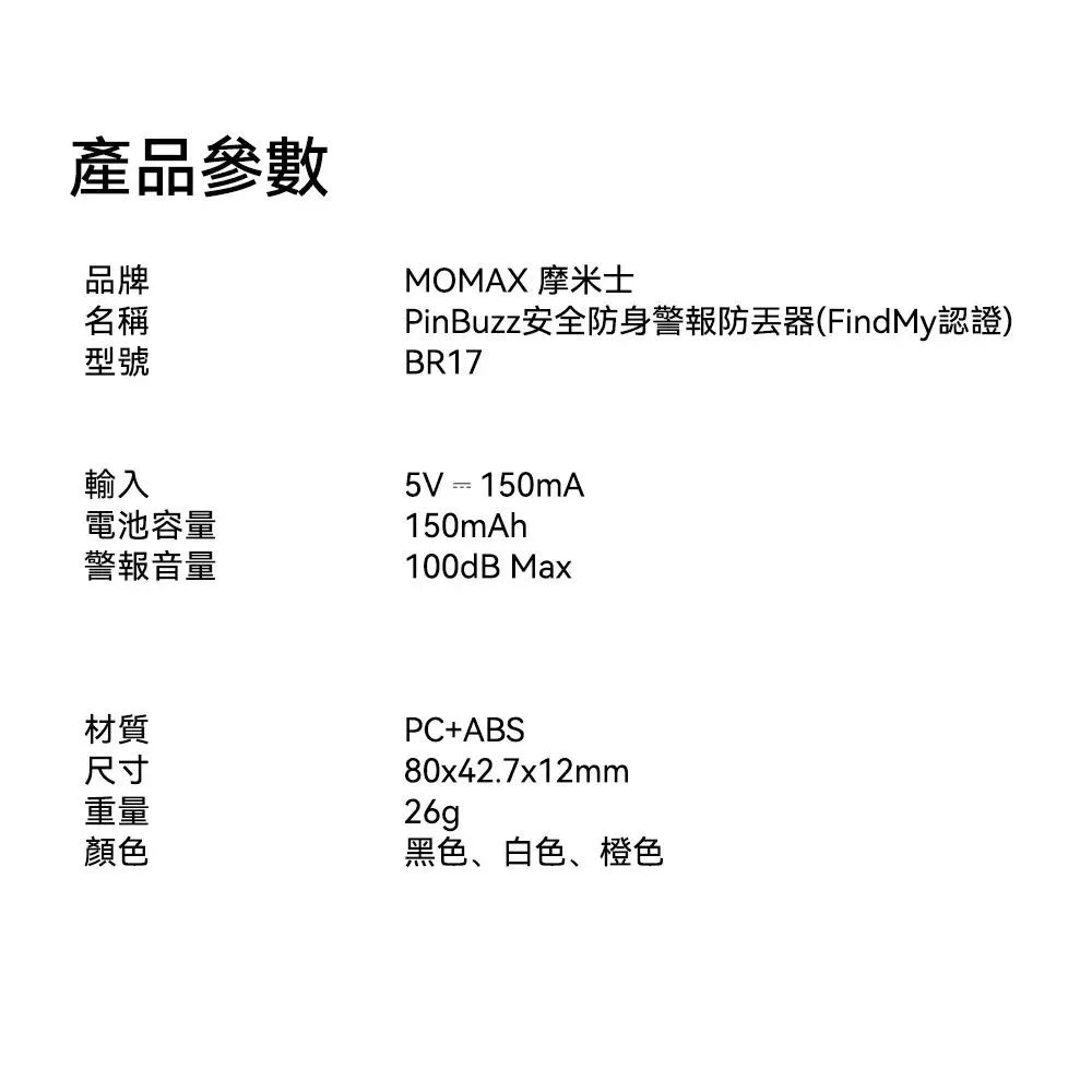 量批∥Momax|摩米士 PinBuzz 可充電防盜個人警報器 Find My 全球防丟器 BR17