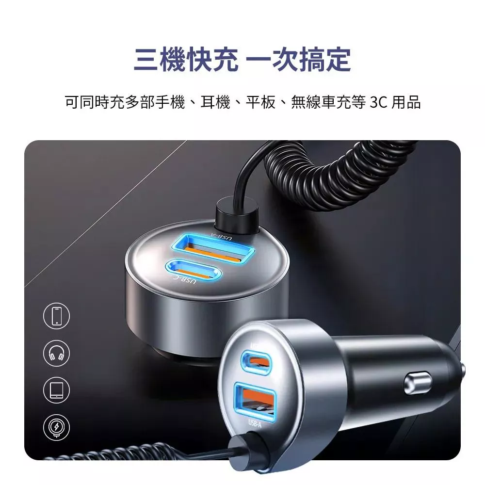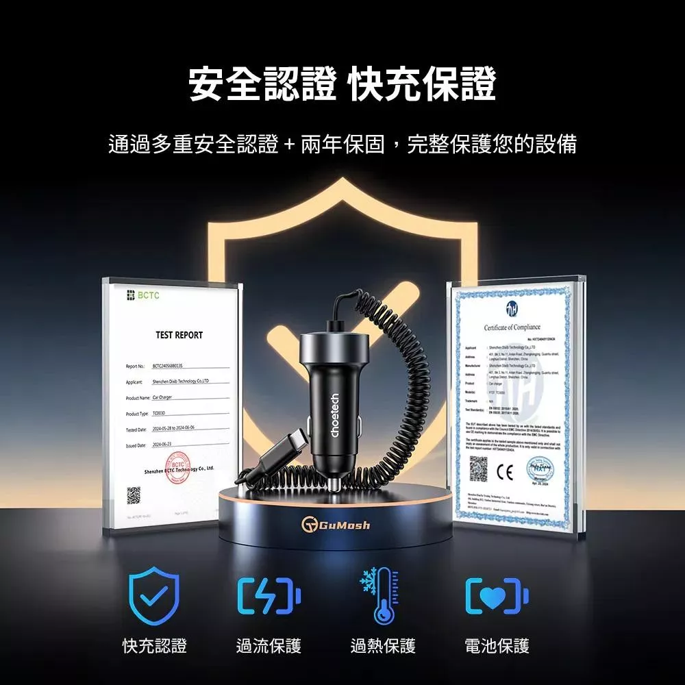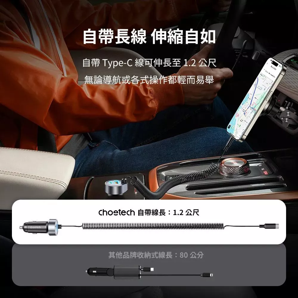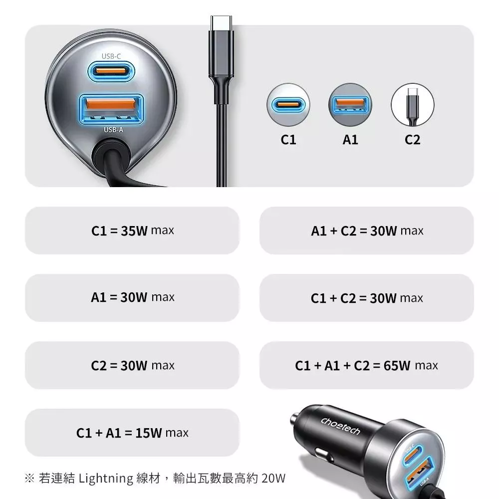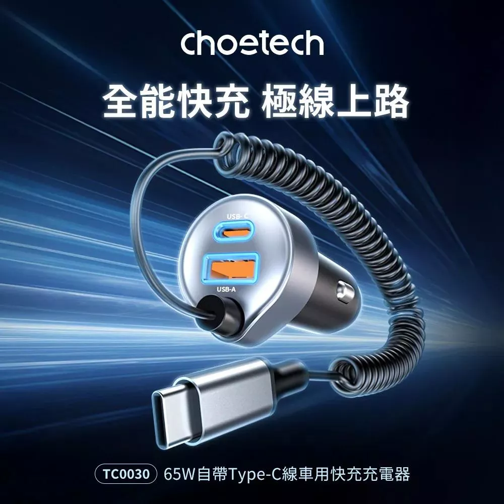 量批∥Choetech|65W 自帶Type-C線車用快充充電器 TC0030