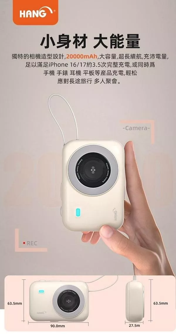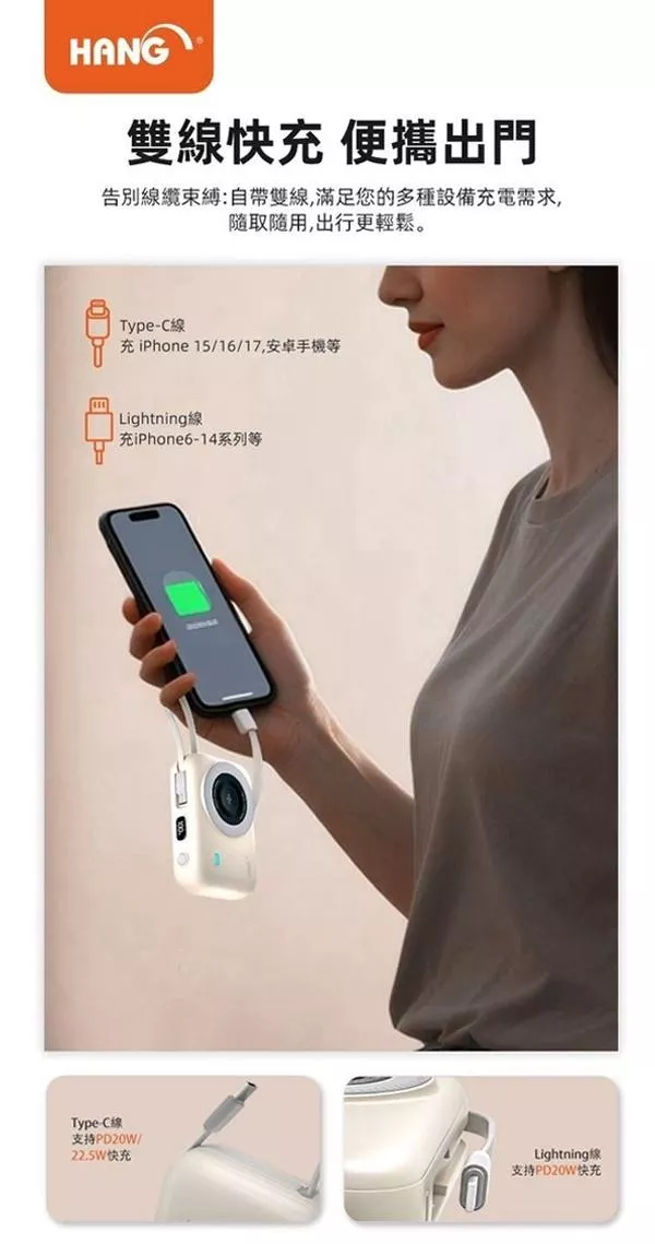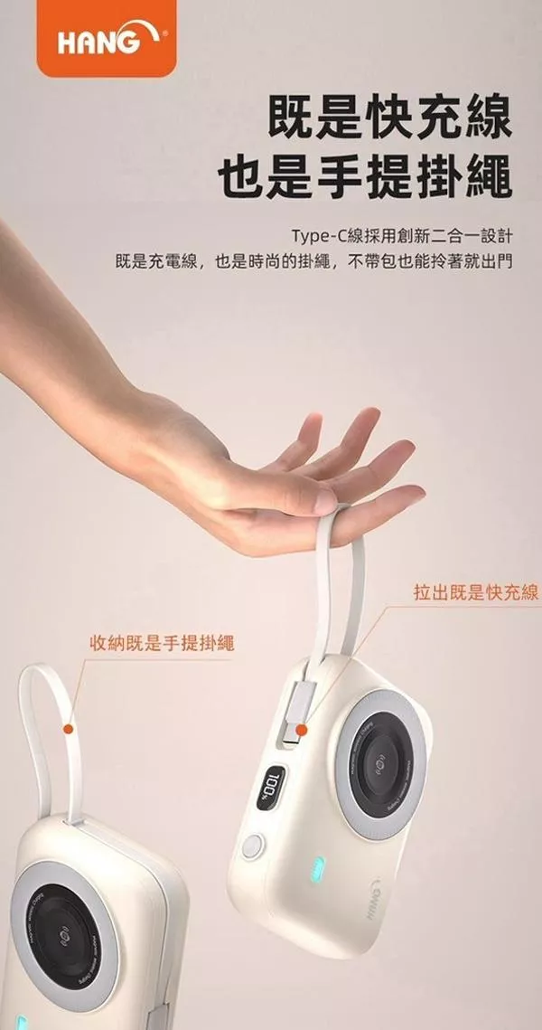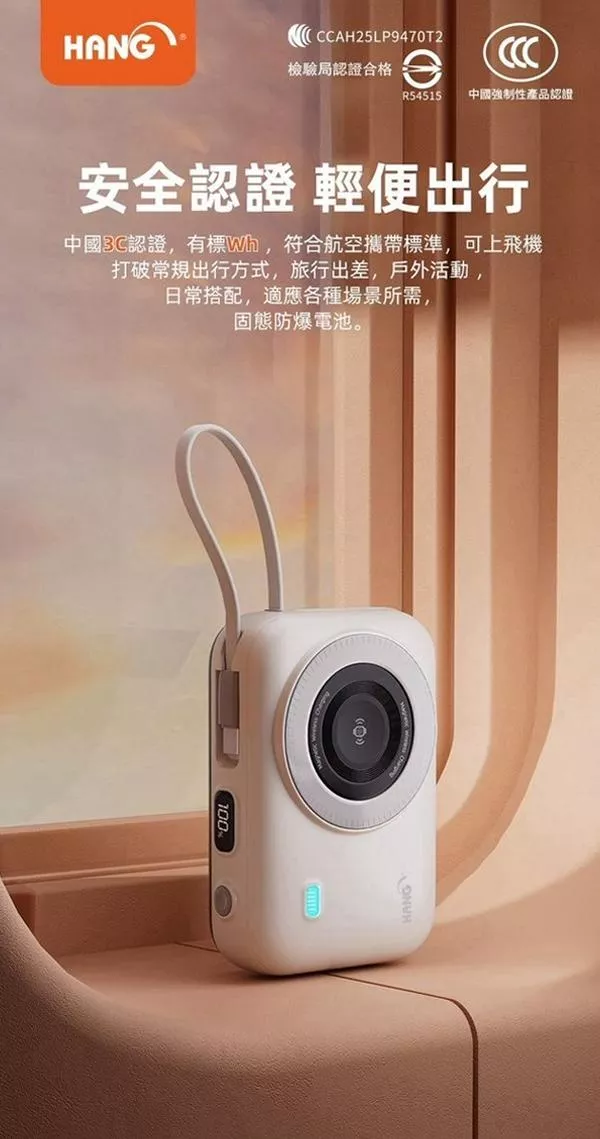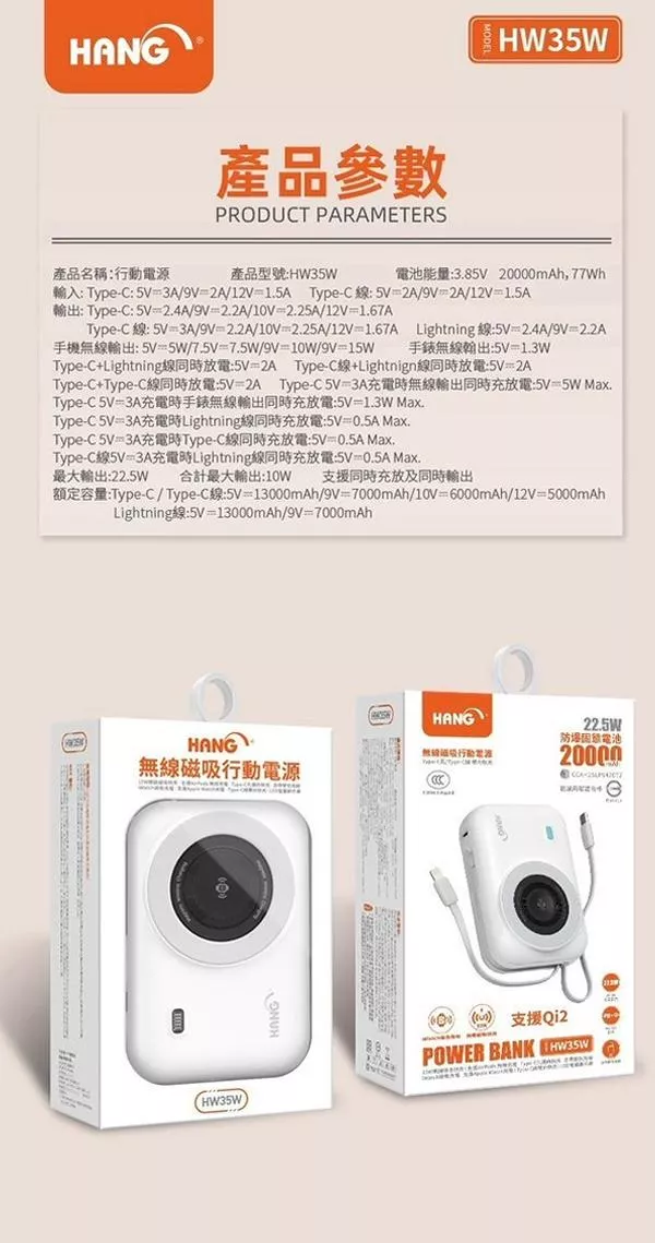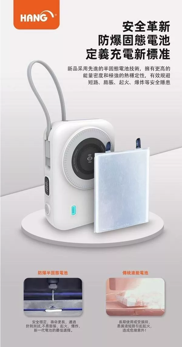 HANG|HW35W 22.5W 固態防爆行動電源 Qi2磁吸充電 20000mAh 自帶線 Wh/CCC認證