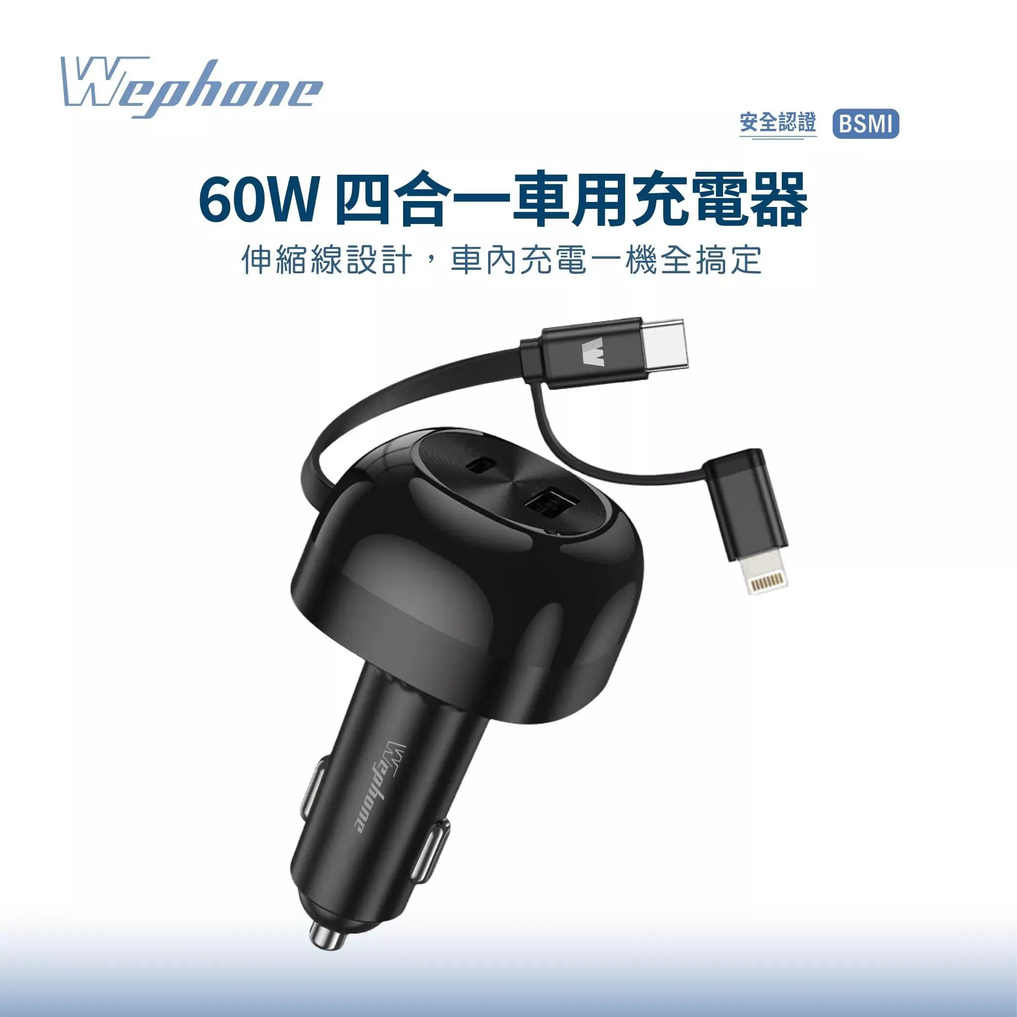 量批∥Wephone|60W 四合一車用充電器 WD03-AECS01
