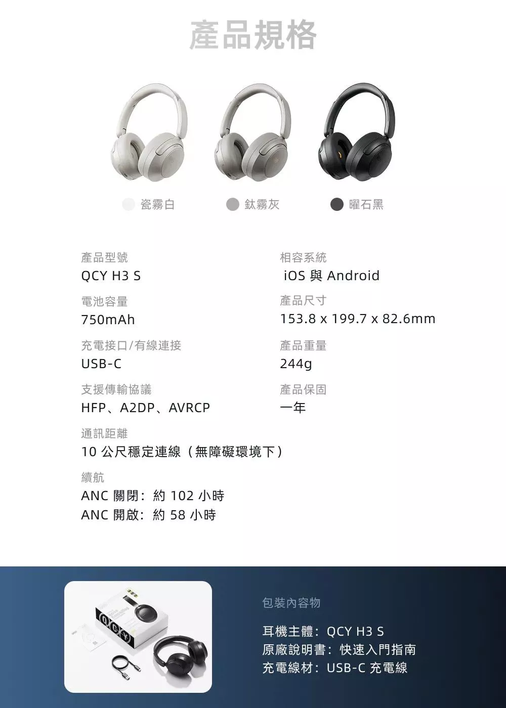 QCY|H3 S 降噪藍牙耳罩式耳機