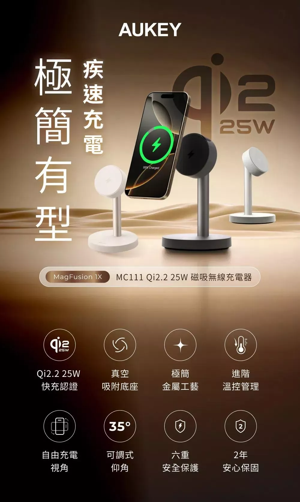 AUKEY|MagFusion 1X Qi2.2 25W 磁吸無線充電器 MC111